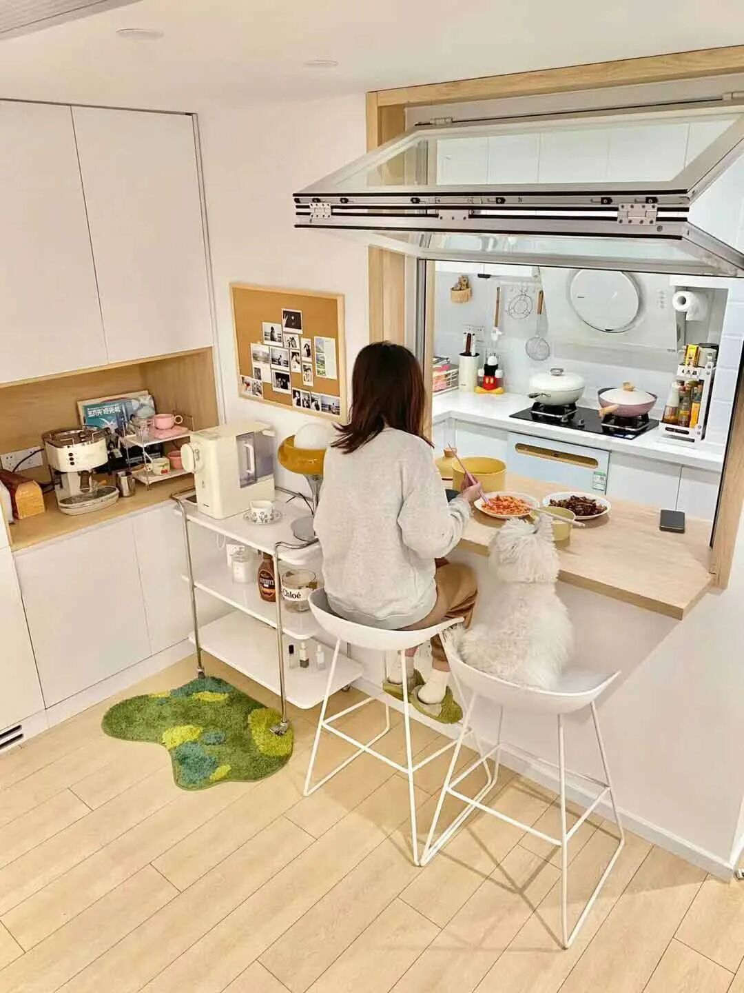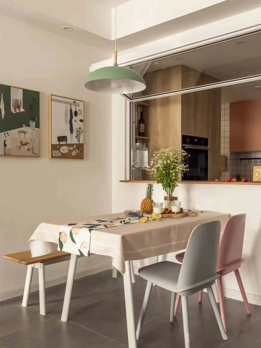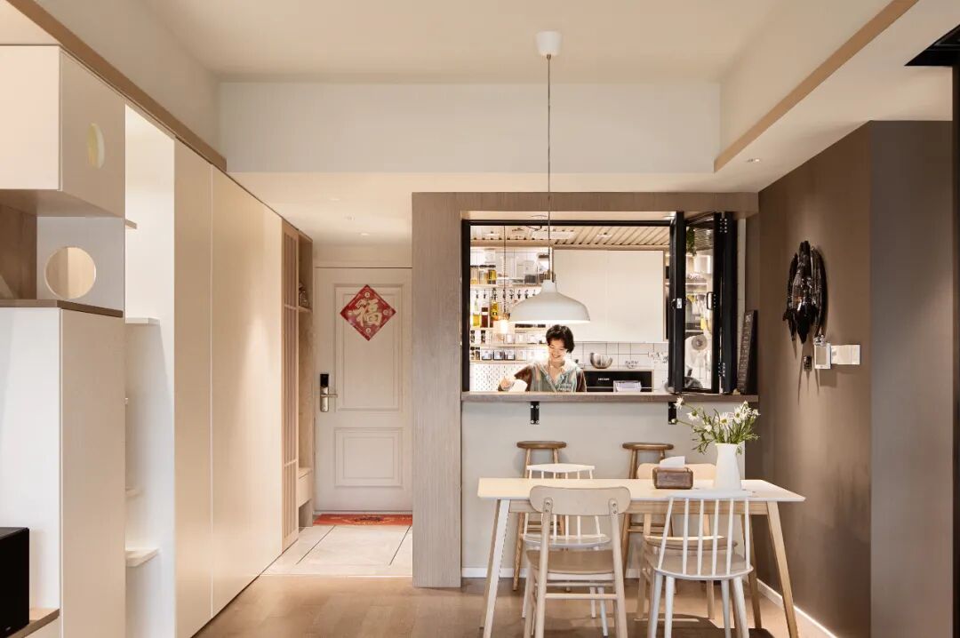 其实,只需要在厨房开个洞,就能轻松解决这个问题,将餐厨空间巧妙连接起来。