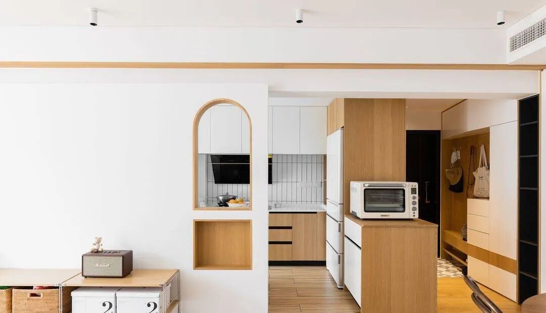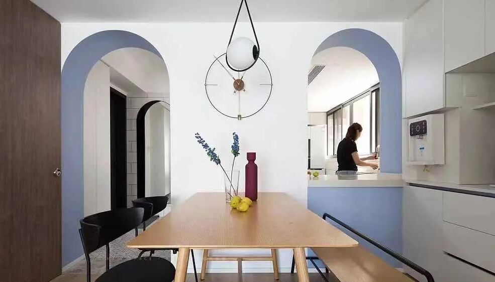 洞口形状既可以做成现代的几何型,也可以做成地中海风格的圆拱形,喜欢工业风的甚至可以在洞口装上金属卷帘,可以根据家装的整体调性随时调整。