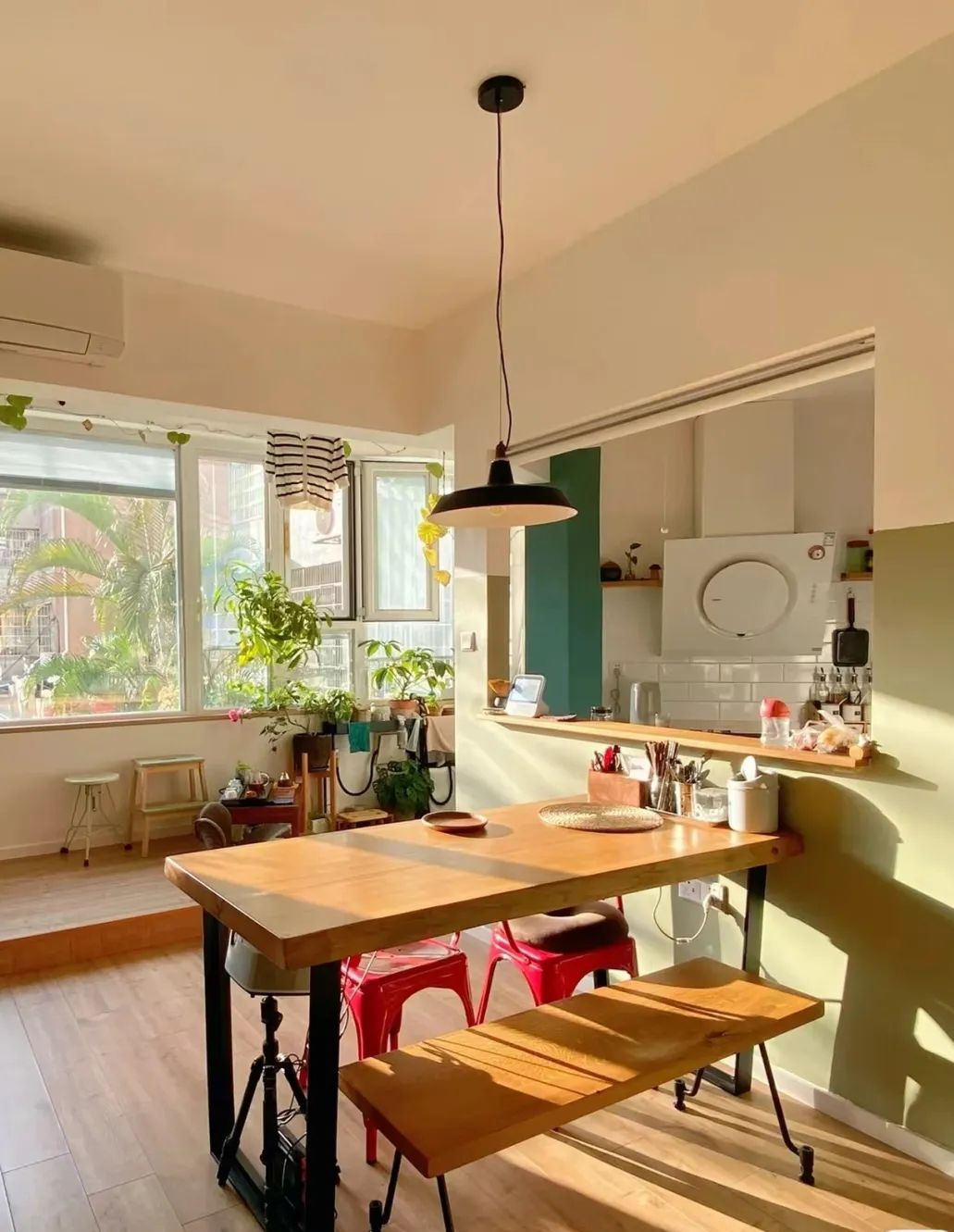 装修时,朝着厨房边上的餐厅、客厅、过道等空间开个窗洞,其实能解决不少问题。虽然也势必会增加打扫的难度,但总的来说,优点还是挺多的: