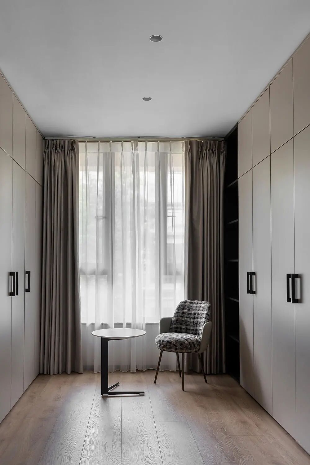 简约的低饱和度配色,及干净利索的柜体线条,让入住感受极度舒适。以低饱和度的木色调为主导,然后加以时尚轻奢的黑色金属色点缀,在设计师精心的装饰和配置下极简与轻奢在空间中更活跃的交织,碰撞出无限的视觉惊喜。
