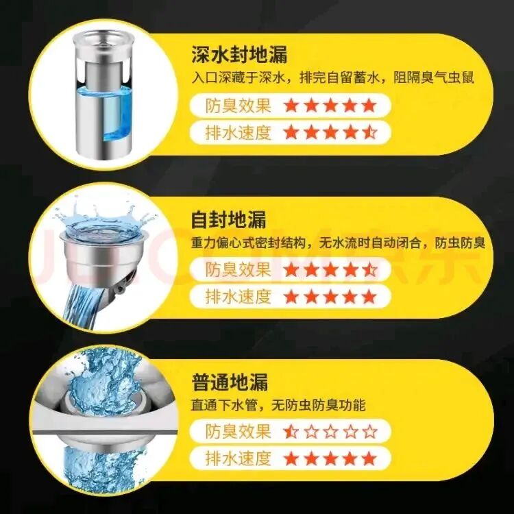 如果是淋浴区域有异味,我推荐更换为U型深水封地漏。