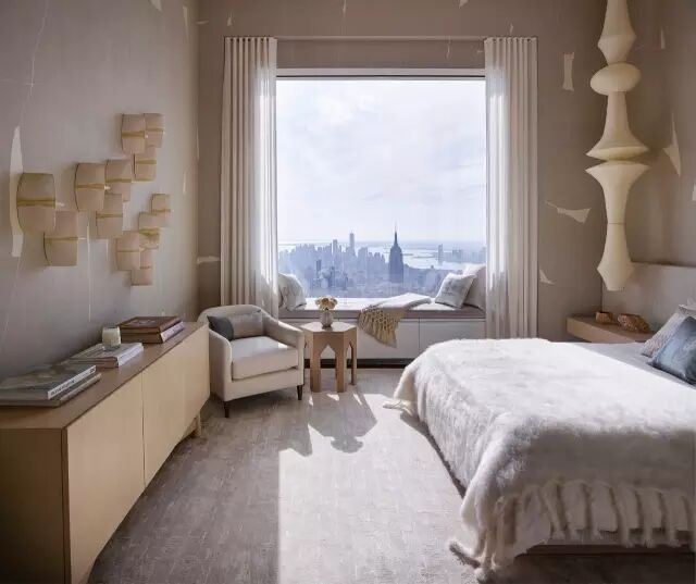 432 Park Avenue最高层、最昂贵的96层“楼王层”,室内使用面积为767㎡,6卧7浴,在2015年售出价为8766万多美元(约6亿人民币,78万/㎡),对比19年该楼的94层公寓(约444㎡的居住空间),以3150万美元成交(约2.16亿人民币,48.6万/㎡),价格差距也是蛮大的。