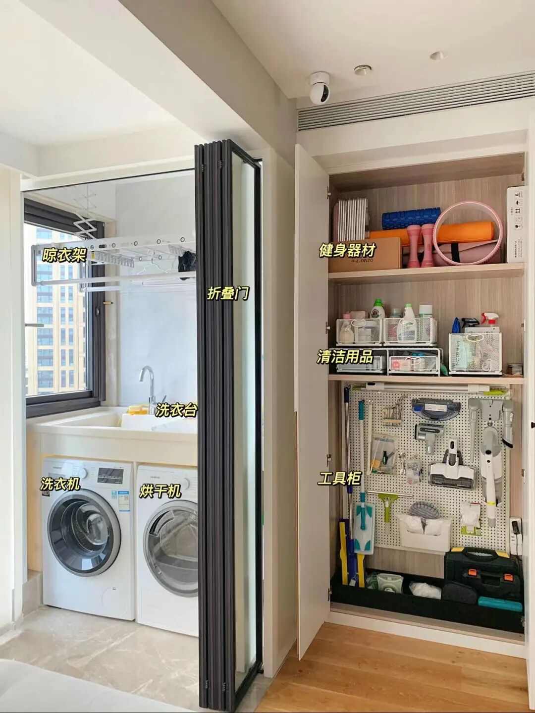 清洁用品、工具箱都在旁边电视柜内,做家务高效又轻松,连邻居看了都想照搬一个这样的设计。