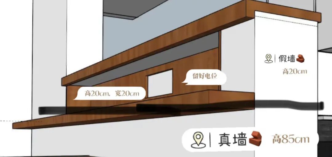 厨房和餐厅的半墙高度跟着橱柜走就可以,大概85公分左右,可以根据实际情况调整,然后让木工师傅在表面和板墙上面打木基层,半墙上方木基层的高度大概在20公分(可以放一些杯子餐具),而且一定要记得留电路,不管是一些小家电,还是吃饭时手机充电都会方便一些。