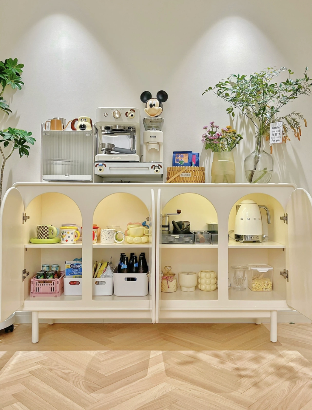 开头就有说过,很多人家里的餐边柜会出现电器、物品放不下的情况。实际上餐边柜也有很多细节需要注意,不仅仅是尺寸,还有几点坚决不装。