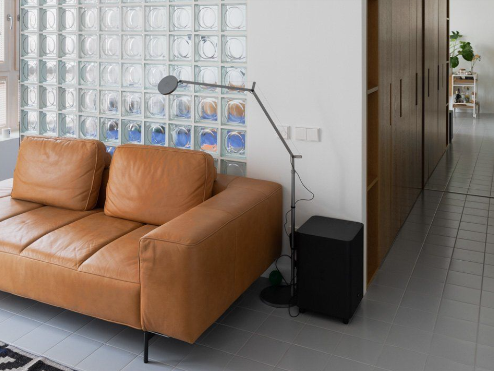 许多开放式餐厨空间与客厅融为一体,但又希望能够有所遮挡,不至于稍微想松懈一些,就会看上去十分杂乱。用透明玻璃砖作为半隔断,即可以让照进来刺眼反光的阳光变得柔和舒适,又可以让墙面有了新的通透感,不会让空间过于割裂。