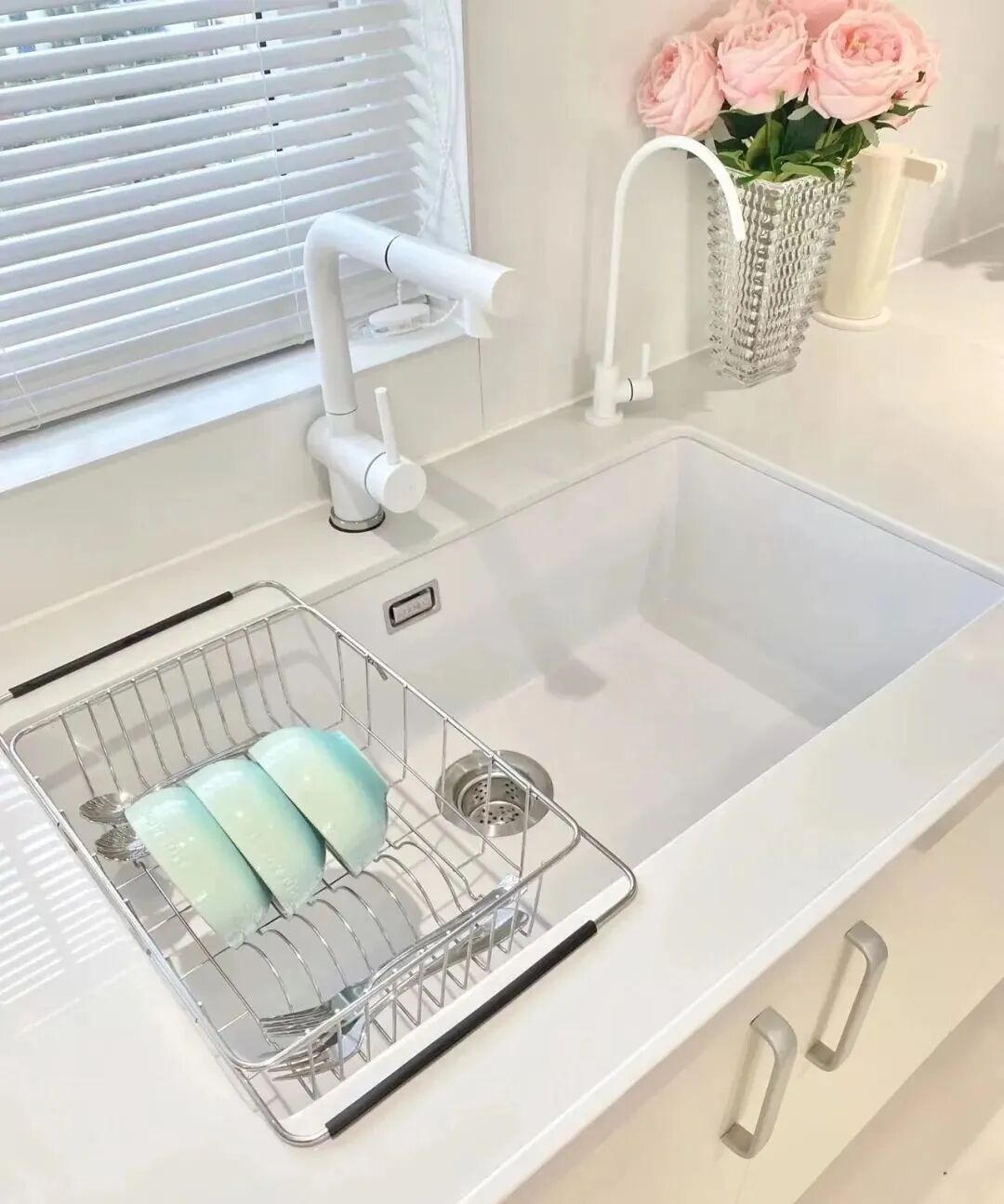 这次果断选择装一个大水槽,啥都能洗,再配上一个抽拉式水龙头,不管是洗锅还是清理水槽,真的是很NICE。