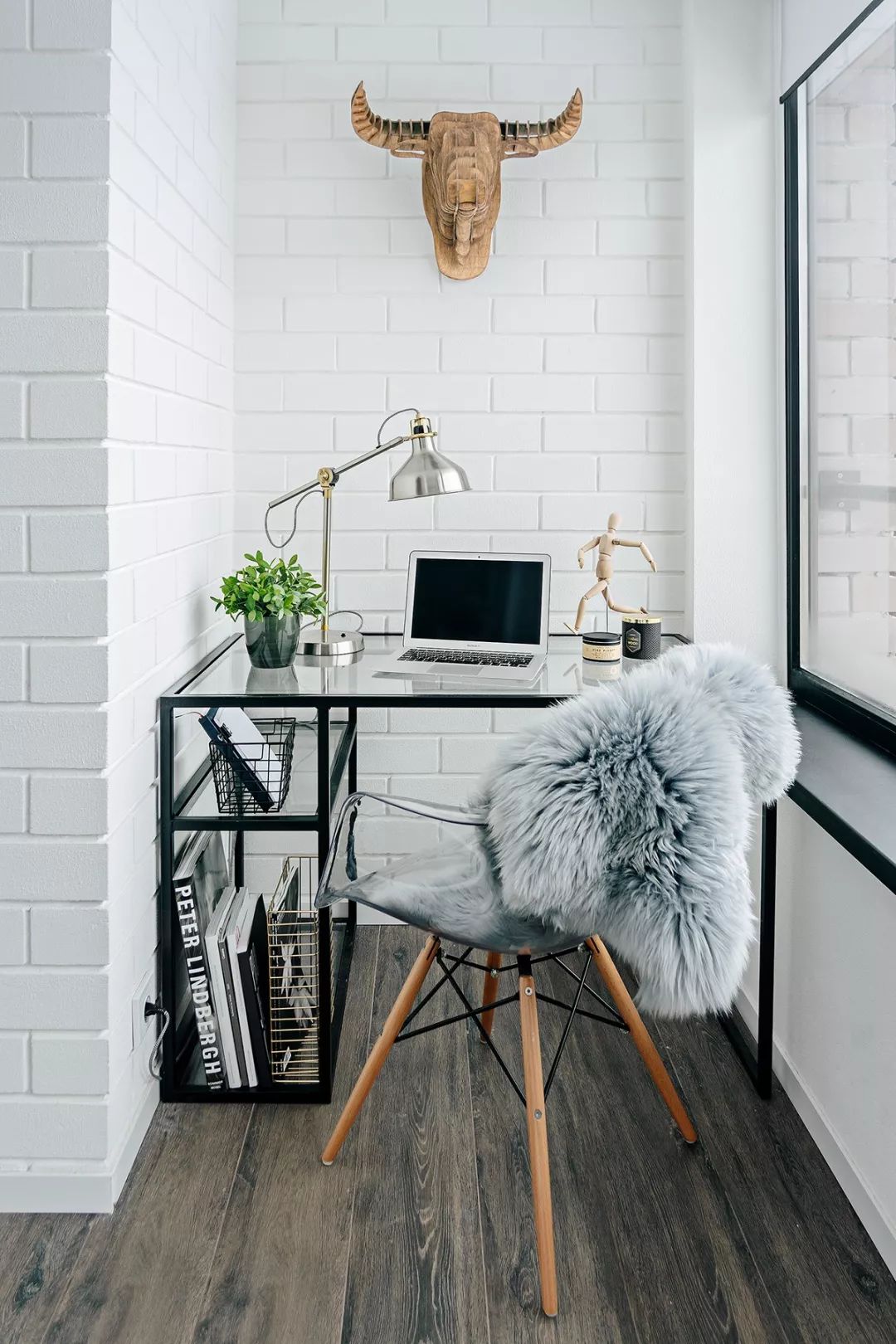 把阳台打造成一个独立办公区,放一张大大的桌子,配一把舒适椅,小小简约工作室就有了。