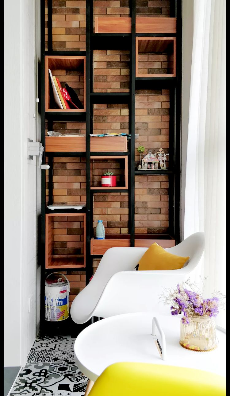 我们可以在阳台处设计一个小小书架,把平时爱看的书籍都收藏在这里,开始是一本、慢慢的两三本,这里就成了一个小书屋......