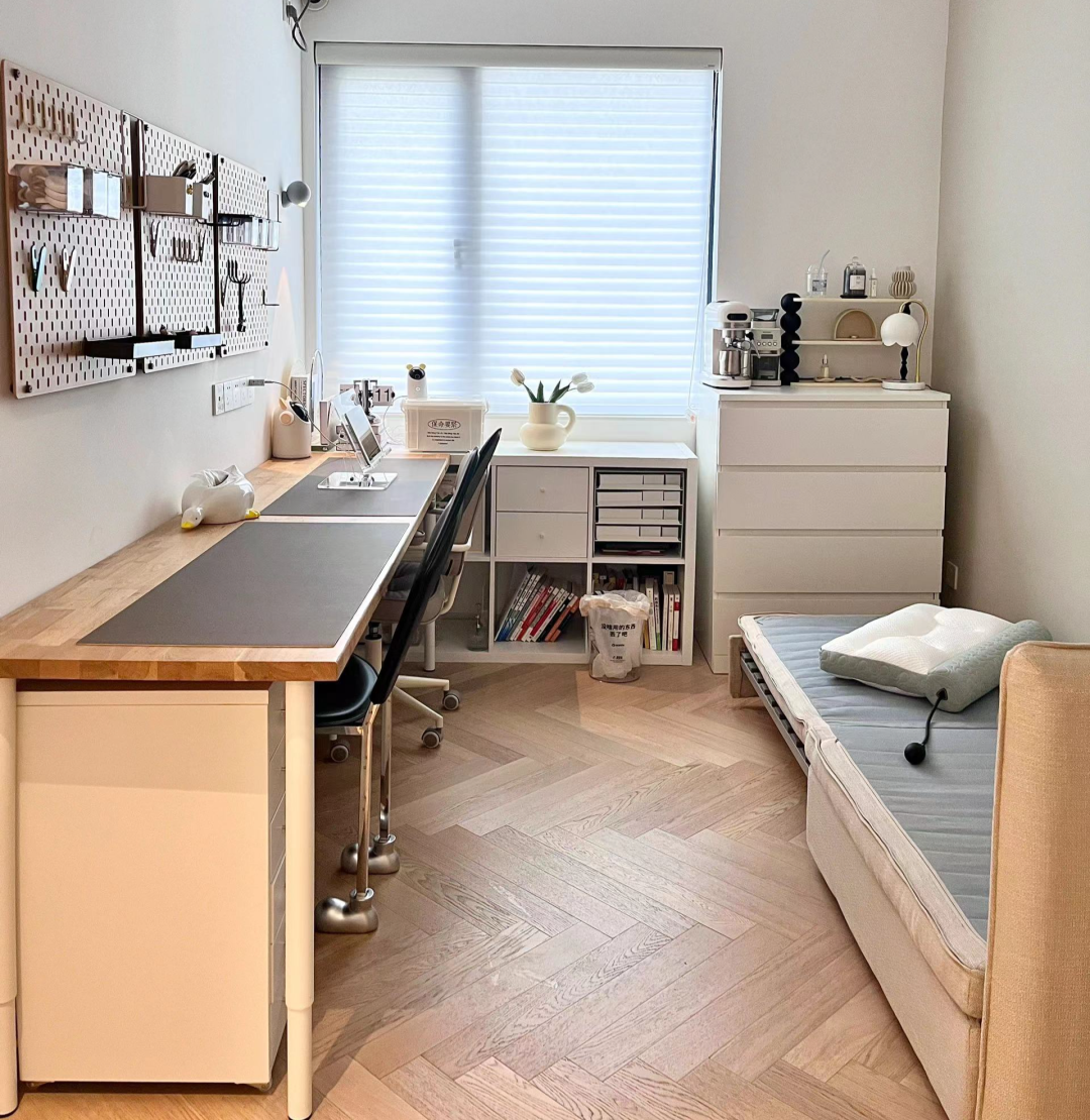 @小钻风的家:小户型不做榻榻米,多功能房左边学习区,右边沙发床,没有全屋定制,都是成品组合,简单又能随时变换风格。