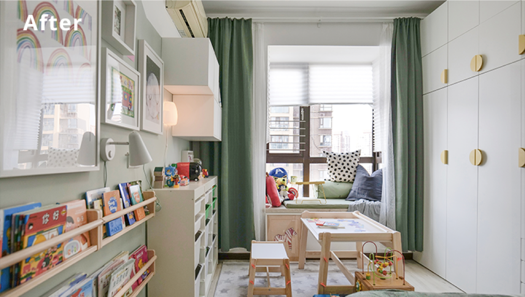 为了给孩子腾出活动空间,着重改造了室内的储物方案,直接变成了儿童游乐室。
