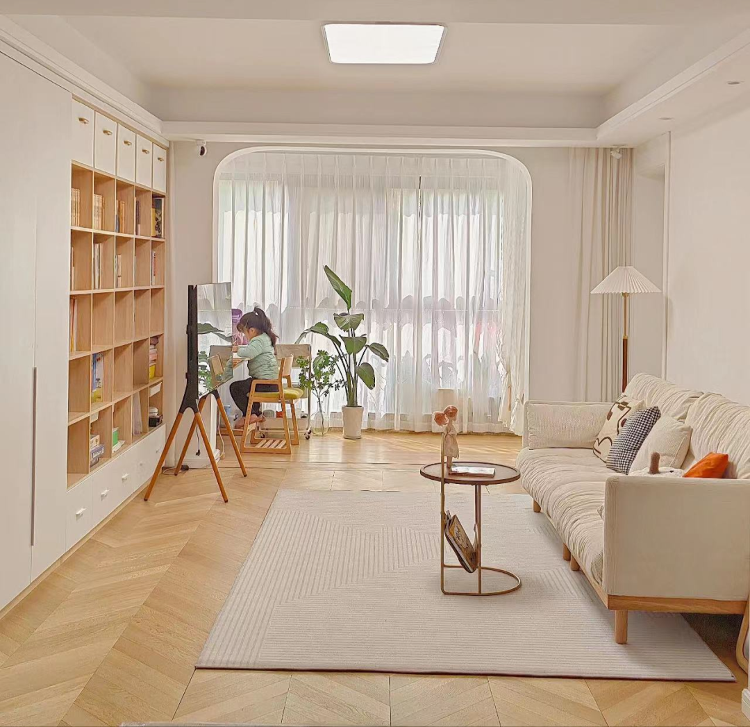 @七七and九九:没有大茶几的客厅打扫卫生更省事,空间更开阔,方便孩子玩耍,跑跑跳跳也少了磕碰的风险。