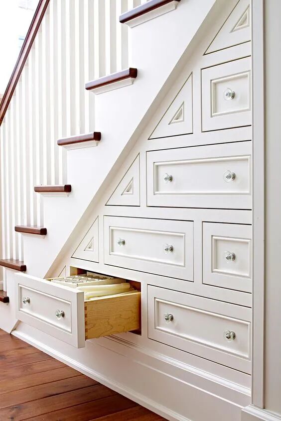 所有小户型都要重视收纳,LOFT也不例外。可以利用挑高优势做一整面墙的柜子,既实用又美观,在楼梯下设置收纳空间,把不用的东西全部放进去,让家看起来更加整洁。