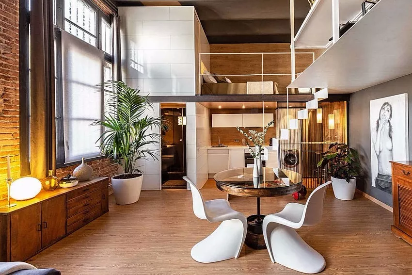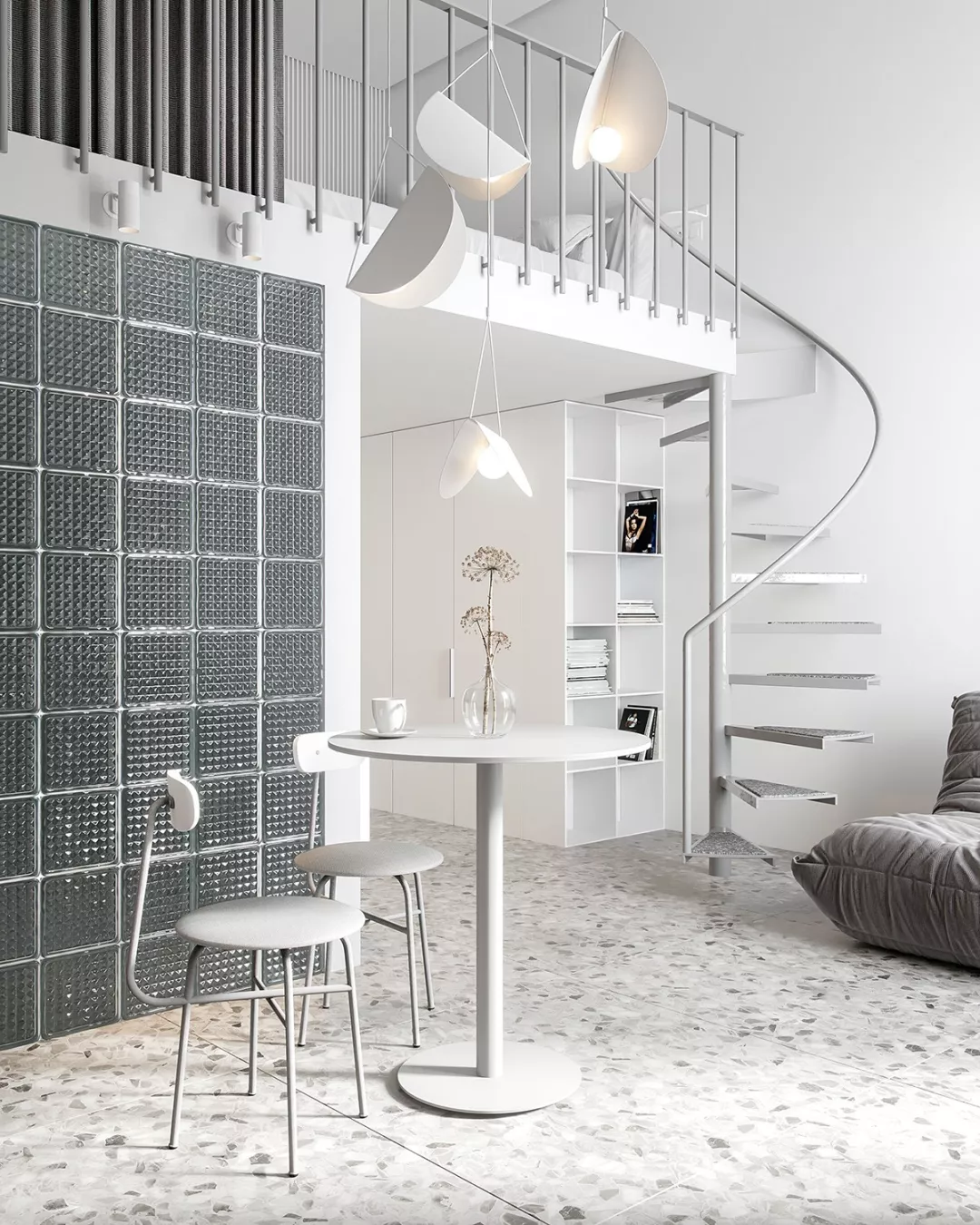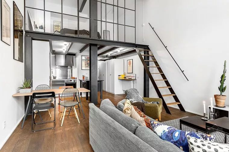 如果在一个仅有30平的小空间内设置七七八八的实墙,会让空间会非常压抑,所以LOFT一定要少隔断。必须要隔断时,不妨选择折叠门或者软隔断,让空间可分可合,实现更多功能。