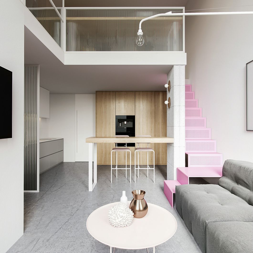LOFT一般都是单面采光,设计不好屋子容易显得压抑。核心原则是白天最喜欢待在哪里,就把采光留给哪个空间。
