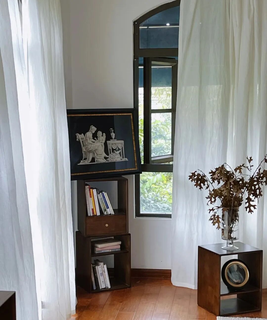 现代简约风近年来备受欢迎,在色彩上,浅色是主导色调,因此,白色窗帘成为常见的选择,它能让房间更加浪漫明亮。