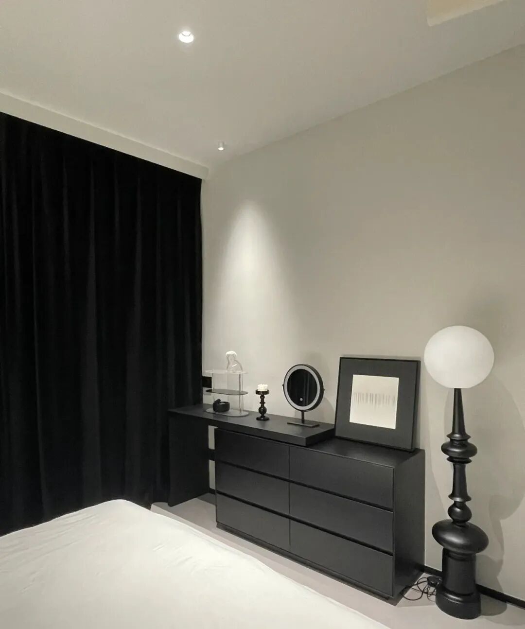 白色窗帘不建议选,那么作为遮光度强的纯黑色窗帘也不建议选。为什么呢?我们选黑色的窗帘,它一个最大的优势就是遮光效果好,关上窗帘屋子一下就暗下来,白天睡觉没问题。但是在实际居住中,黑色窗帘常常让室内变得灰暗、阴沉,给人一种压抑的感觉,如今本来我们的工作生活压力就够大量,家庭环境如果过度压抑,人就很容易抑郁。因此,对于家用的窗帘,我们并不建议选择黑色。