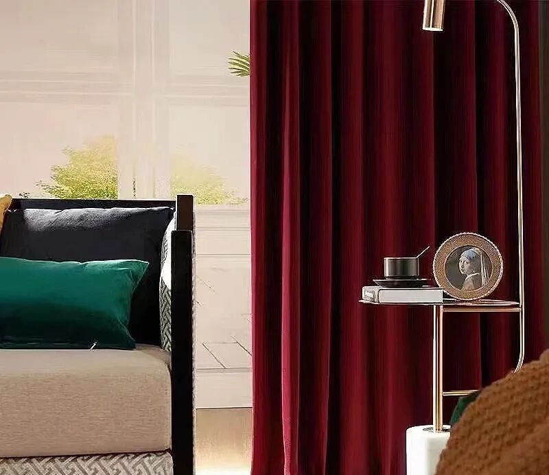 深色窗帘遮光性好,虽然我们很少会考虑选择深红色或大红色的窗帘。