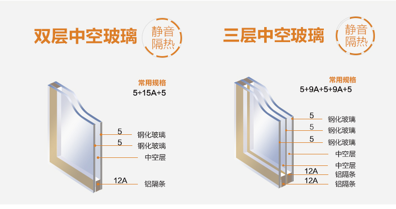 玻璃要选带3C认证的,最好选三层中空夹胶的玻璃,放弃选钢化玻璃,夹胶玻璃相对更安全一些,降噪效果也好。
