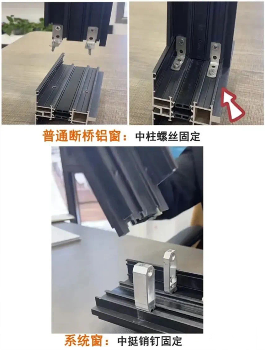 系统窗多腔体构造,主腔体大且尼龙条多,断桥铝窗腔体小且数量少。系统窗的中梃设计抗风压能力极强,刮台风都很难吹跑,而断桥铝中梃单一,不够粗,窗体支撑力较弱。