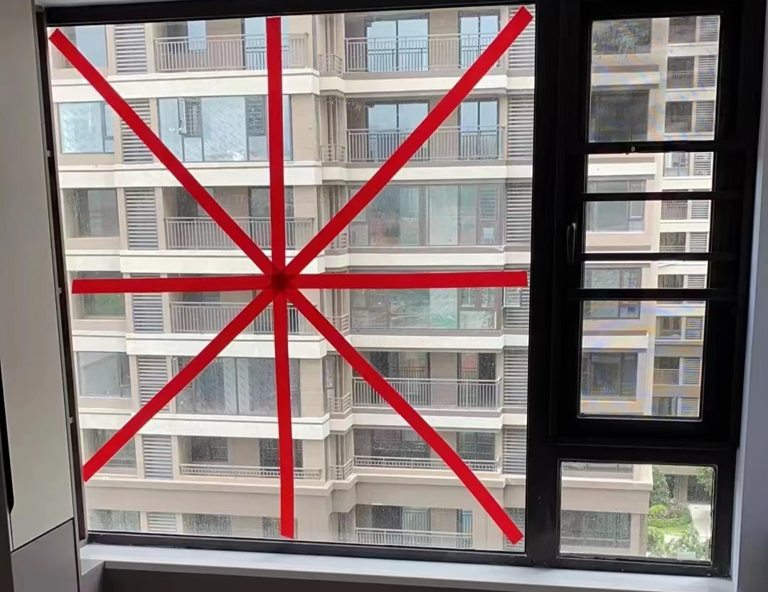 @网友豆花:为了避免玻璃被台风吹碎,贴了米字型胶条,以备后患,据说在一定程度上分散本该集中在玻璃窗户中心的压力,玻璃还能得到胶带的支撑,会降低危险系数。