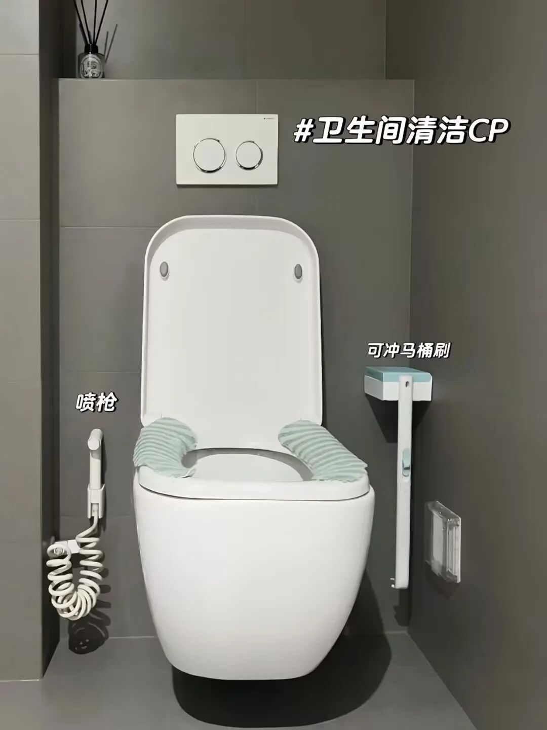 既然为了彻底解决卫生间的滋生细菌的问题,那一定不能让马桶刷留在卫生间,另外,我家卫生间还配了喷枪。