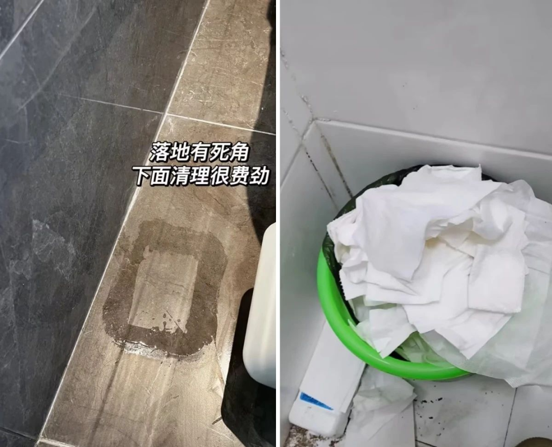 2、卫生间死角难打理,比如瓷砖缝隙、马桶后方缝隙、洗漱台缝隙等地打扫起来非常不方便。