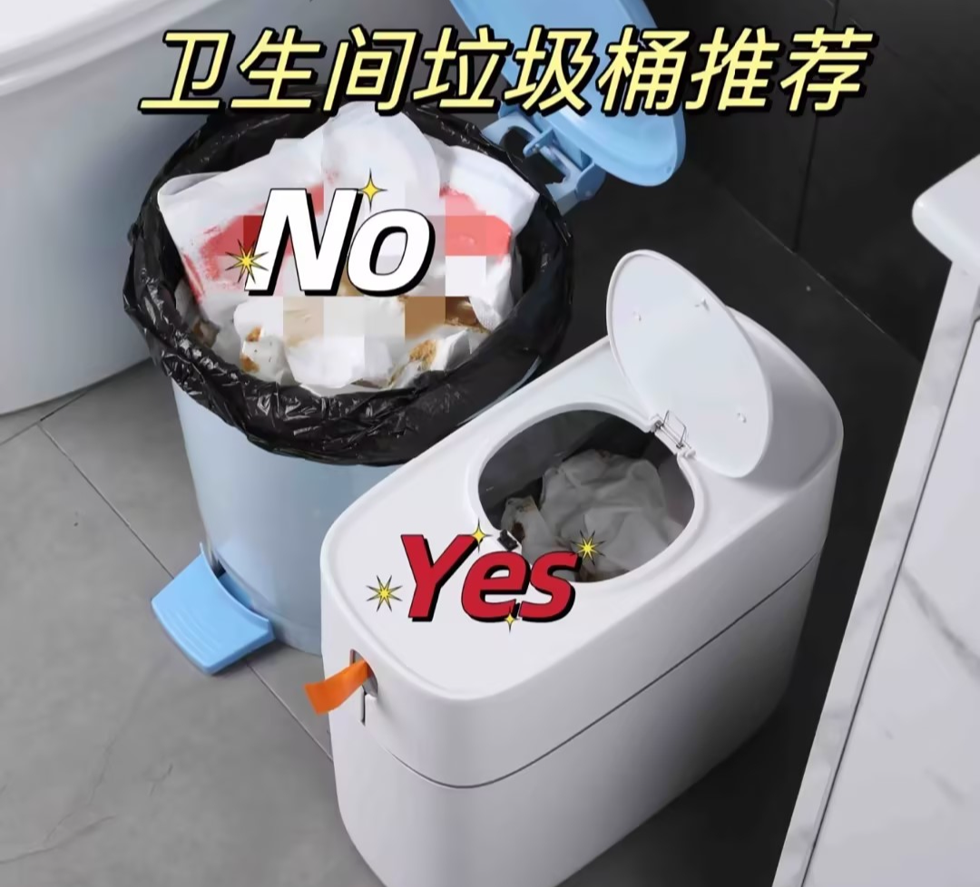 说实话,女孩子们的生理期、感冒擦鼻涕......没个垃圾桶还真不行,如果卫生间非得放垃圾桶,一定要放带盖垃圾桶,避免细菌扩散,并且尽量保证每日更换!