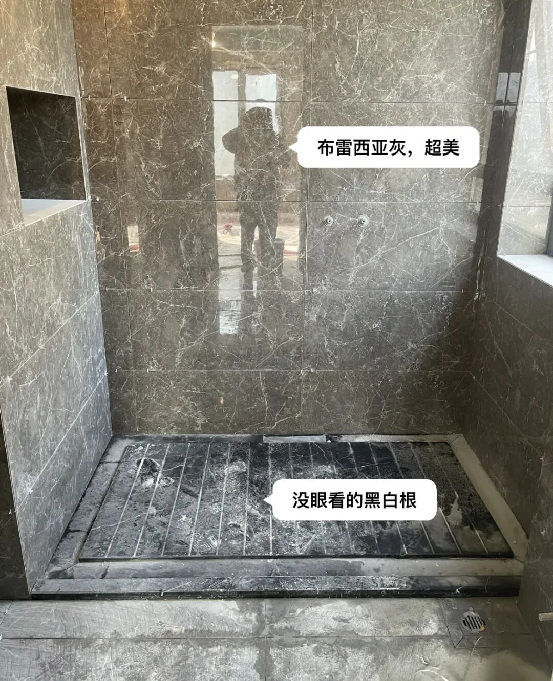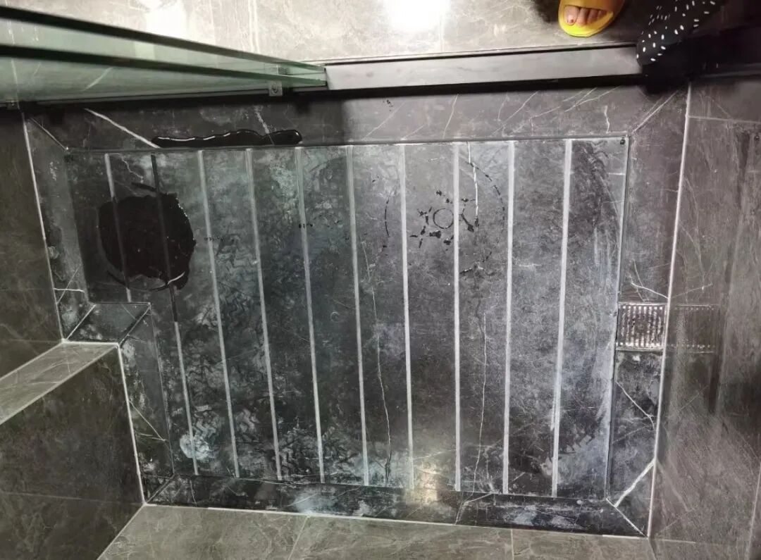 尤其是黑色大理石的拉槽看起来糟糕透了。用了一段时间之后,拉槽排水的四周会返碱,凝结出水垢,痕迹很明显,严重影响整体的视觉效果。本身大理石拉槽的材料费就得上千块,再加上设计和安装费用,会浪费不少钱。但是看到这种情况恨不得立马敲掉重装!