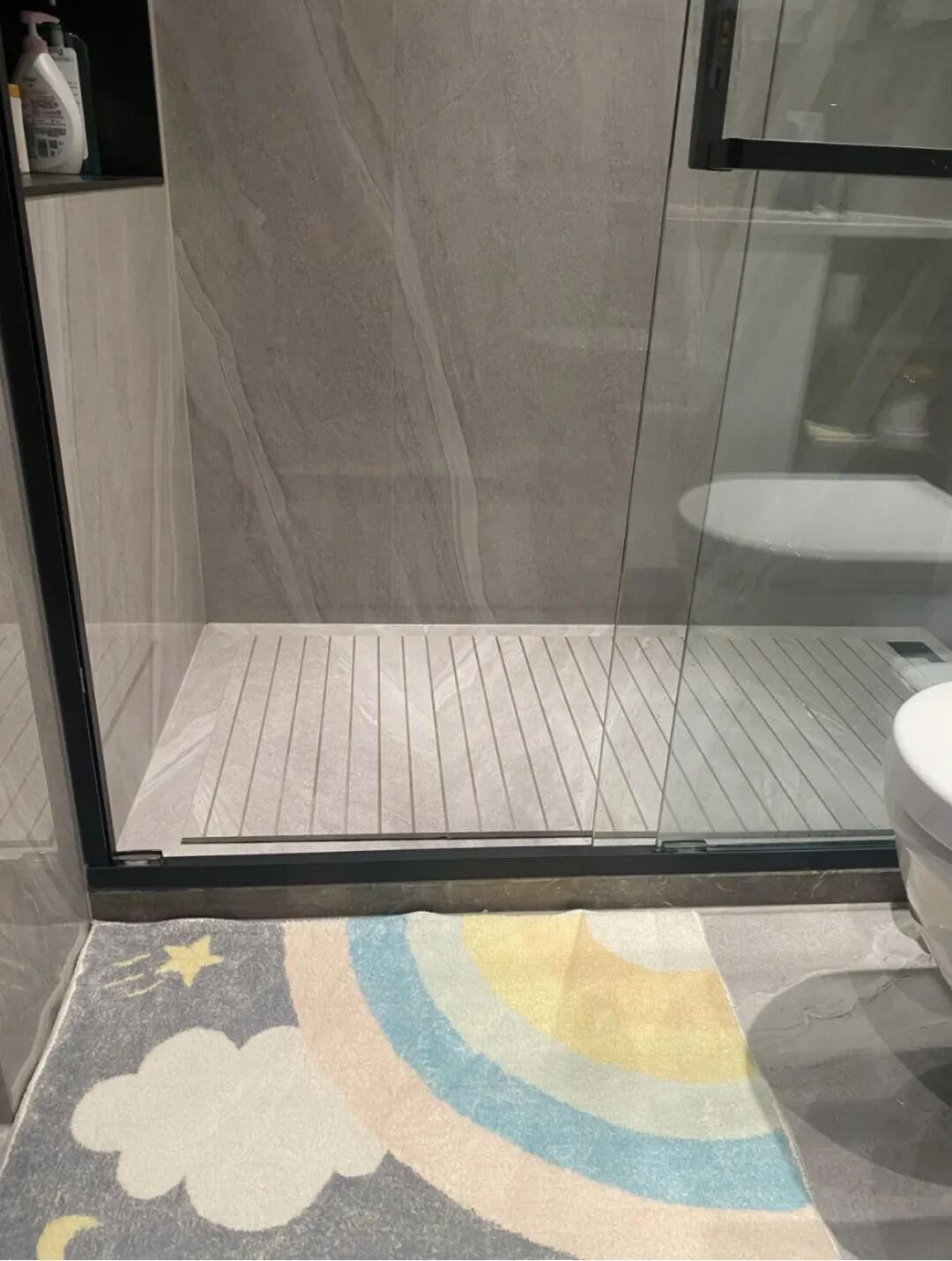 实际上现在市面上有很多防滑瓷砖,颜值高还好打理,拉槽式劝大家谨慎尝试!