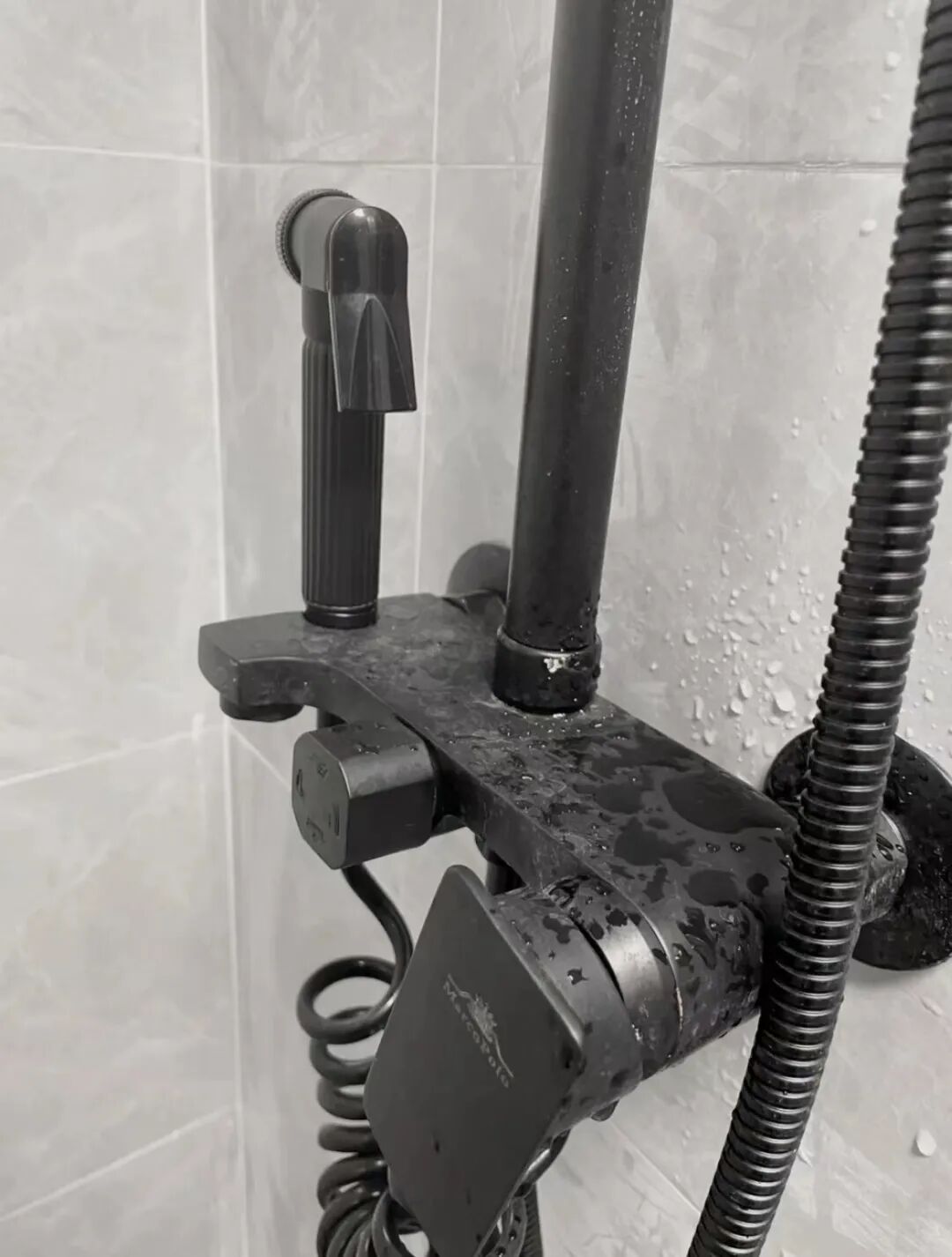 然而这种五金件多数是烤漆工艺制作的,所以表面才能达到这种高级哑光的效果,但其最大的缺点是容易脱漆,而且表面不光滑容易积累水垢,再加上黑色的本身就更容易显脏,所以最终都会成为翻车现场。