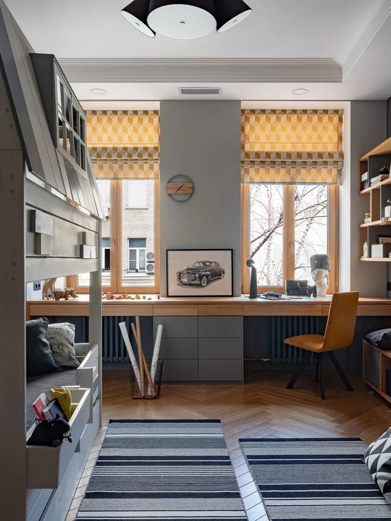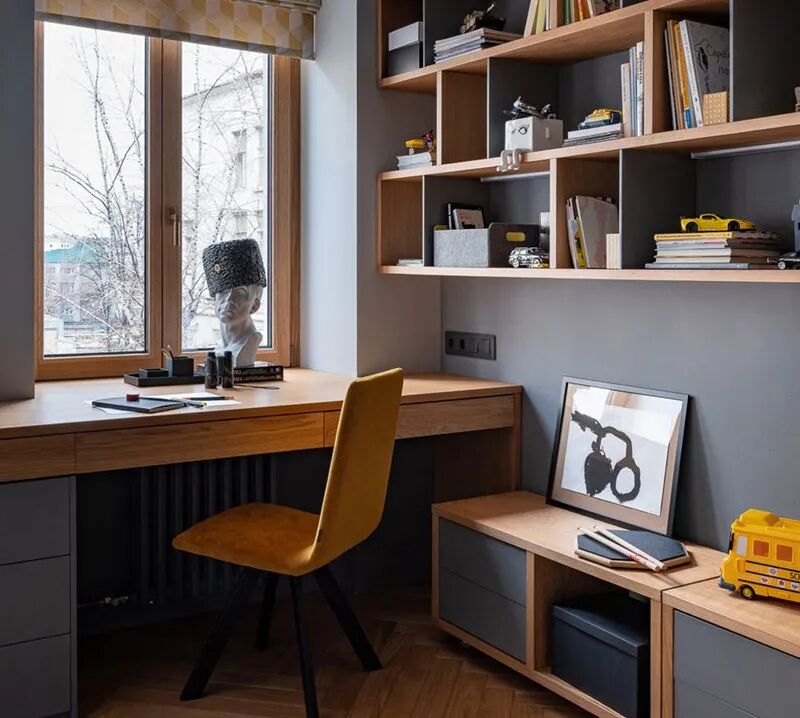 推荐把飘窗的台面做个延伸,这样能够有个正儿八经的书桌面积。
