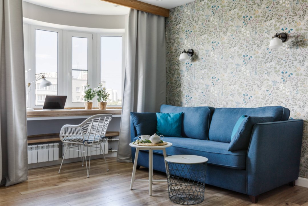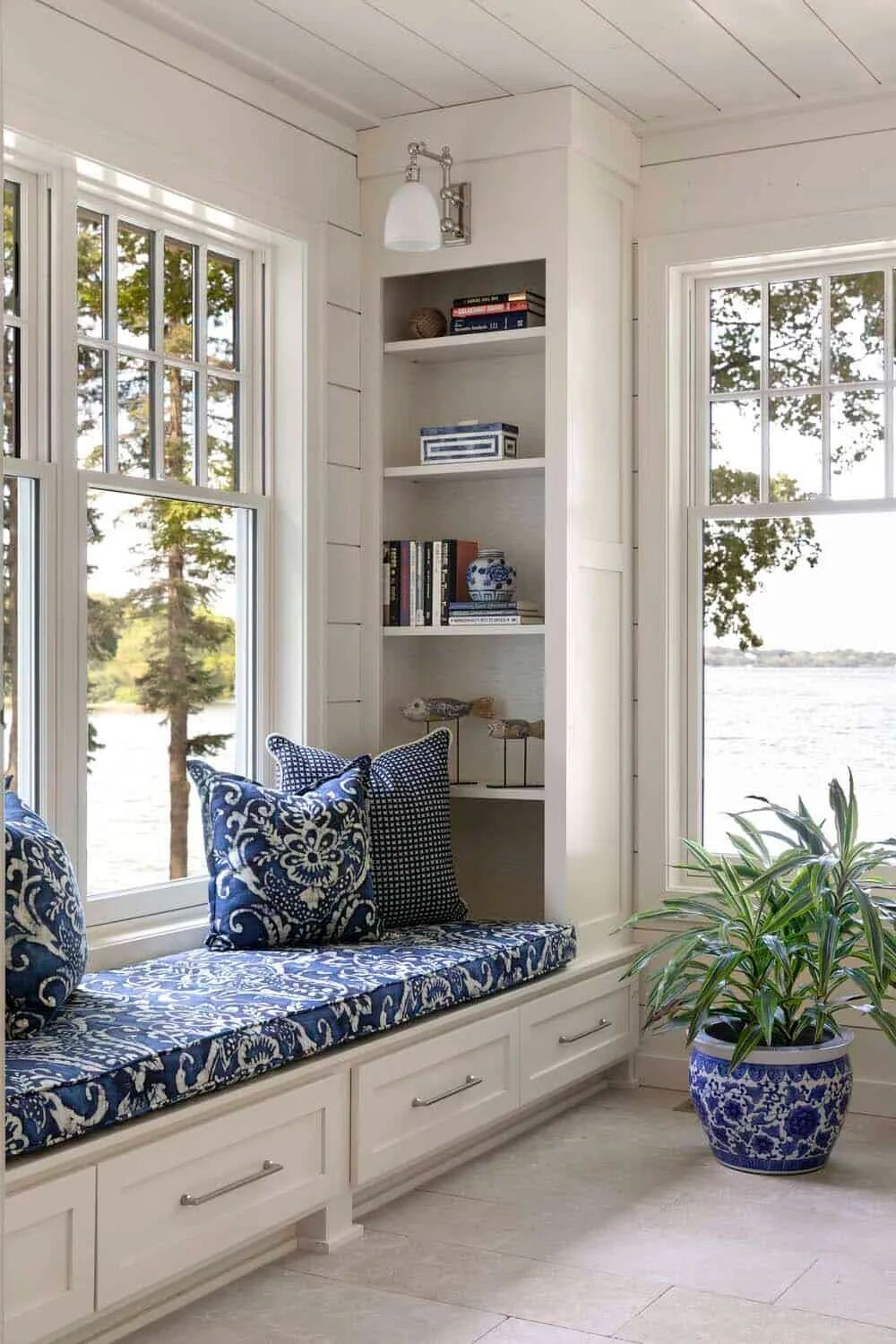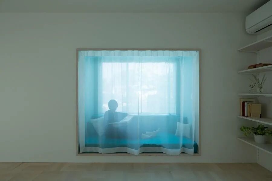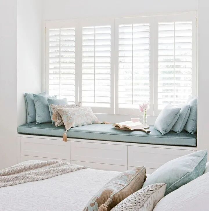 比如说上图中的蓝色系飘窗,蓝色是著名的“让人放松的颜色”,跟惬意的飘窗空间搭配起来,治愈效果倍增。