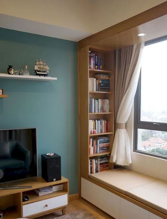 最开始做飘窗的时候,如果预留一点收纳空间,会有意想不到的效果。