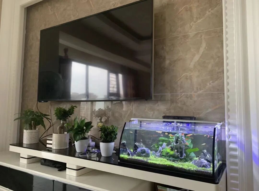 客厅一般都是家里面积比较大的空间,经常会有人选择养一些小鱼,显得更加有生机活力,放在电视旁边地方宽敞而且一眼就能看到。