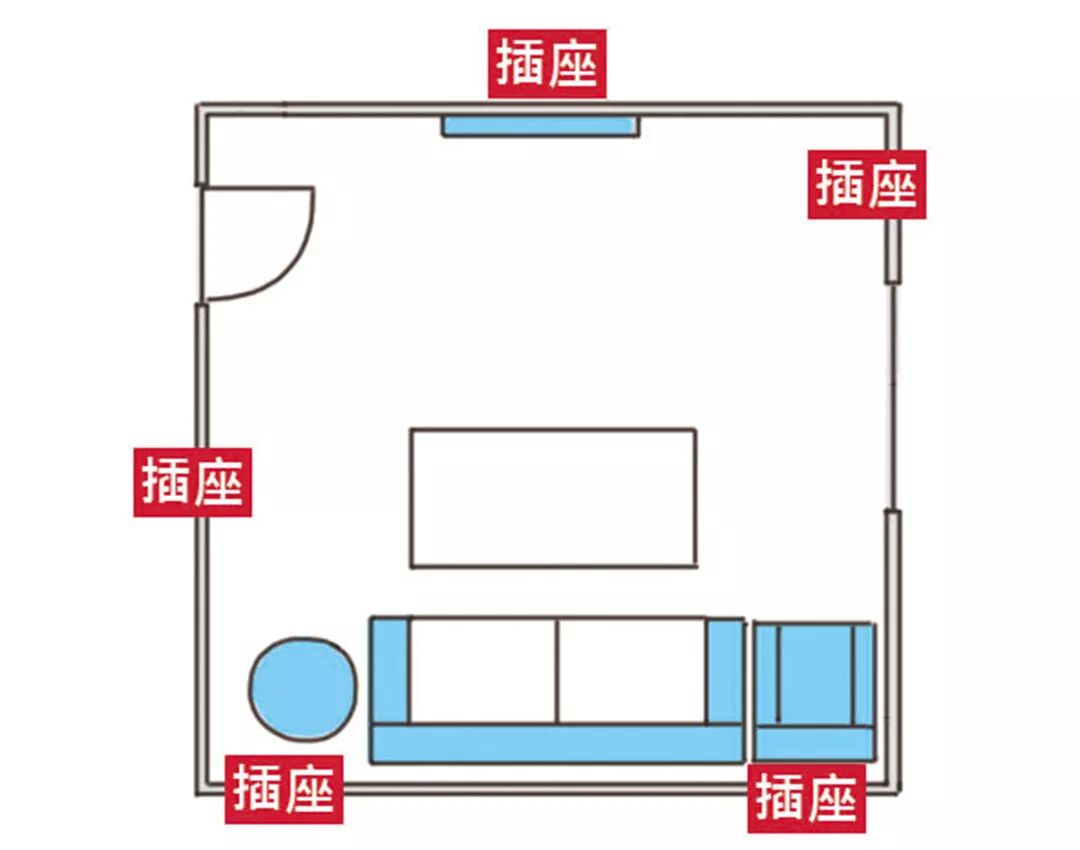 除了上述常见细节,客厅装修后悔排行榜前三名一定有插座,多数人都表示最后悔的就是插座没留够。在规划插座数量时,宁可多留,以免等到用电时方恨少,还得多拉插排横越客厅中央,显丑又碍事。