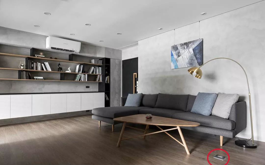 除了墙上可设插座,像下面的案例则是在地面设置插座,若想在客厅使用笔记本电脑,坐在沙发就能用,摇身变成工作室。