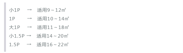 造成这个问题的原因:一是空调P数不够,二是空调装错位置。判断P数是否足够可以参考下图: