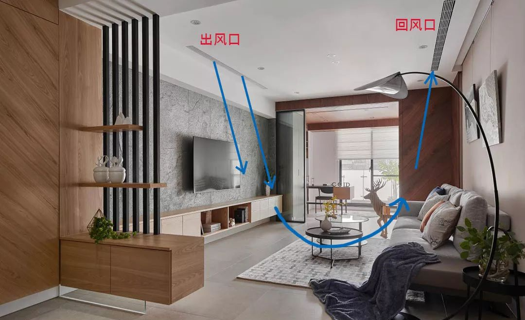 而像吊隐式空调可以沿着吊顶内部四处拉管,出风口与回风口的位置就得特别注意!