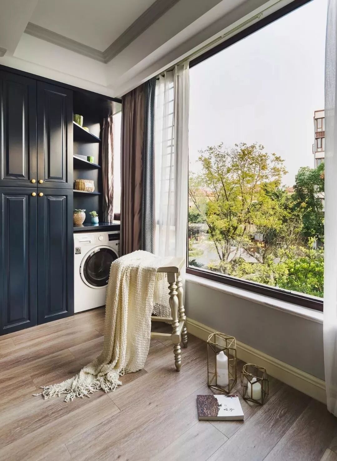 不管是木纹瓷砖还是大规格板材,当把阳台打造成洗衣区,地面一定要防滑,除了考虑美观之外,实用也是很重要的。