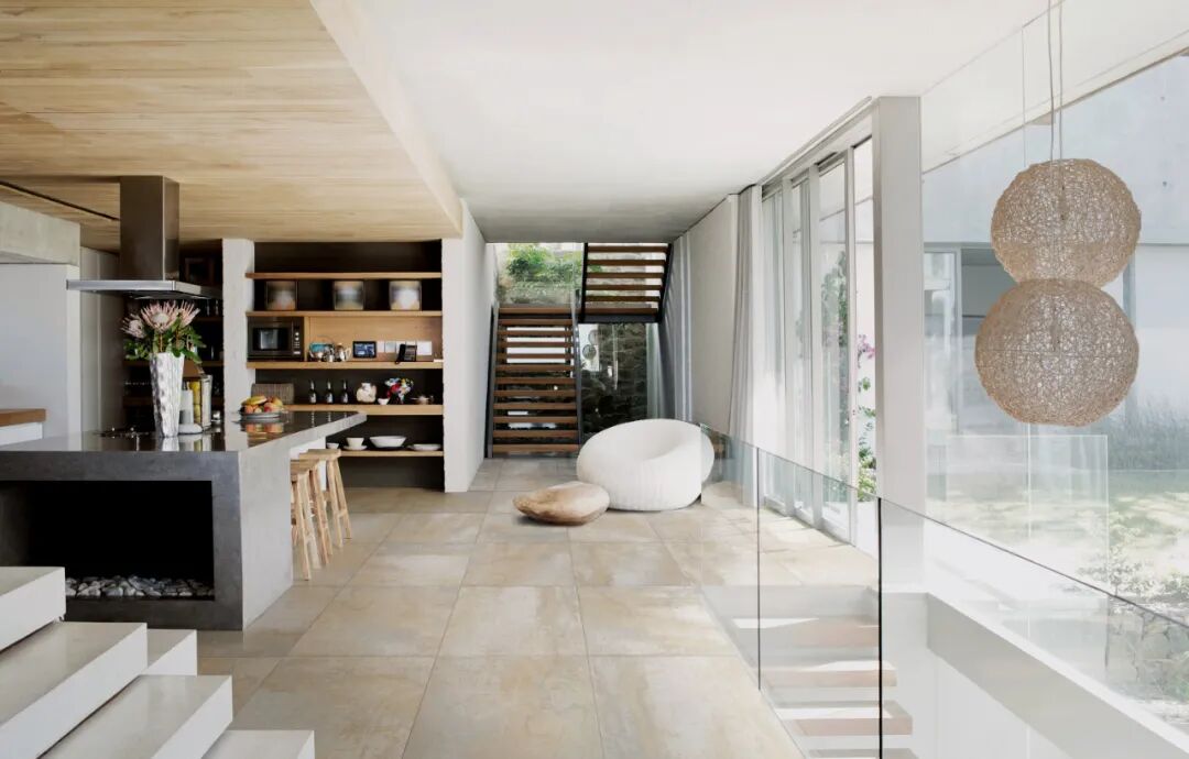 因为阳台本身离近窗户很容易藏灰,而哑光砖本身自带岩石感,没有了亮光却更耐看,生活其实讲求的就是“天然的舒适度”,所以,即使因为工作忙,顾不上天天打理也不会显脏。