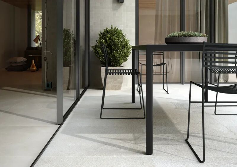 相较于过去空间分明的设计来说,现在越来越流行一体化,越来越多的人选择将阳台和客厅的瓷砖通铺,既能延伸空间,简单的方式实现“空间变大”,整洁的效果。