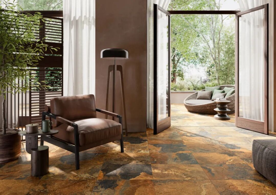 木纹砖自然的木纹纹理,也不用像木地板需要日常打理保养,正常使用即可,与家里的花花草草搭配,绝对是最接近自然的组合。