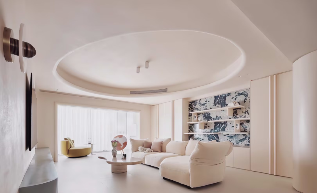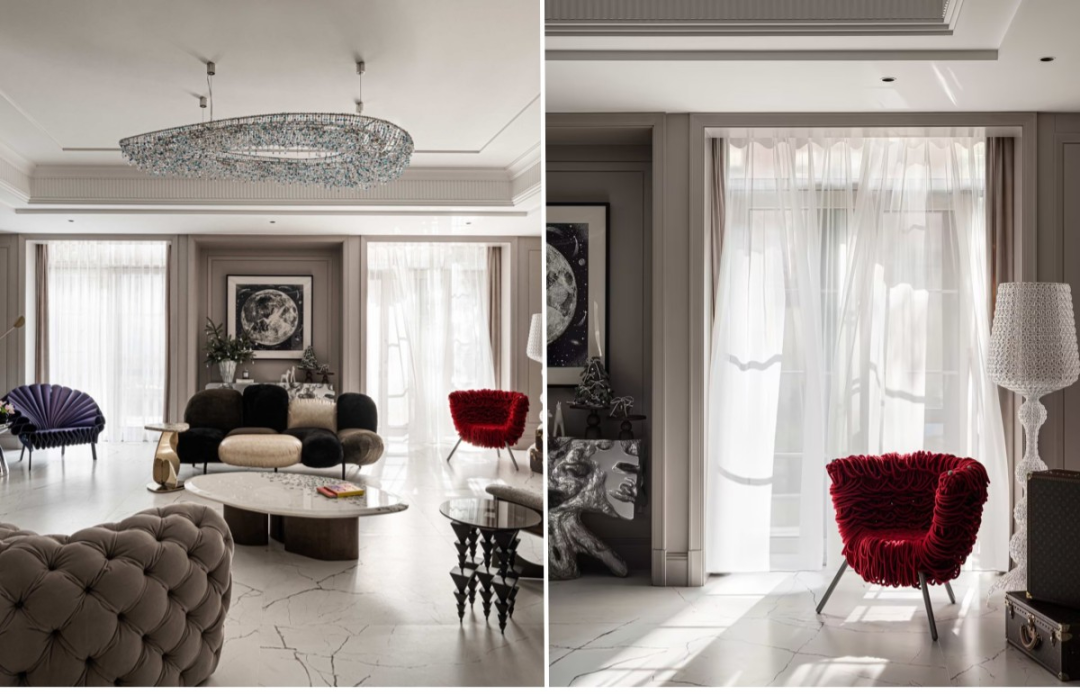 因为阳台与客厅相通,现在很多设计弱化了空间界限,建议地面选择同一款瓷砖,降低地面的“混乱风险”……让家庭空间有更好的整体性!