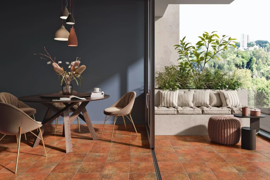 无论是主打怀旧复古风格的传统小规格仿古砖,还是在规格和色调上突破更大的现代仿古砖,都大大丰富了阳台用砖的选择,其实,比起过门石来做分区带来的低颜值,通铺更显空间的高级感。