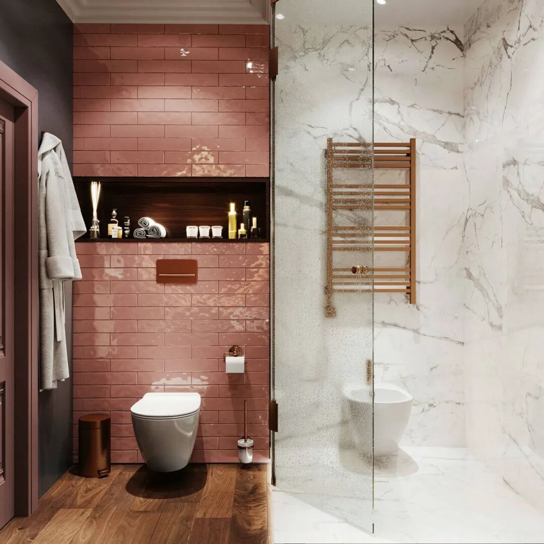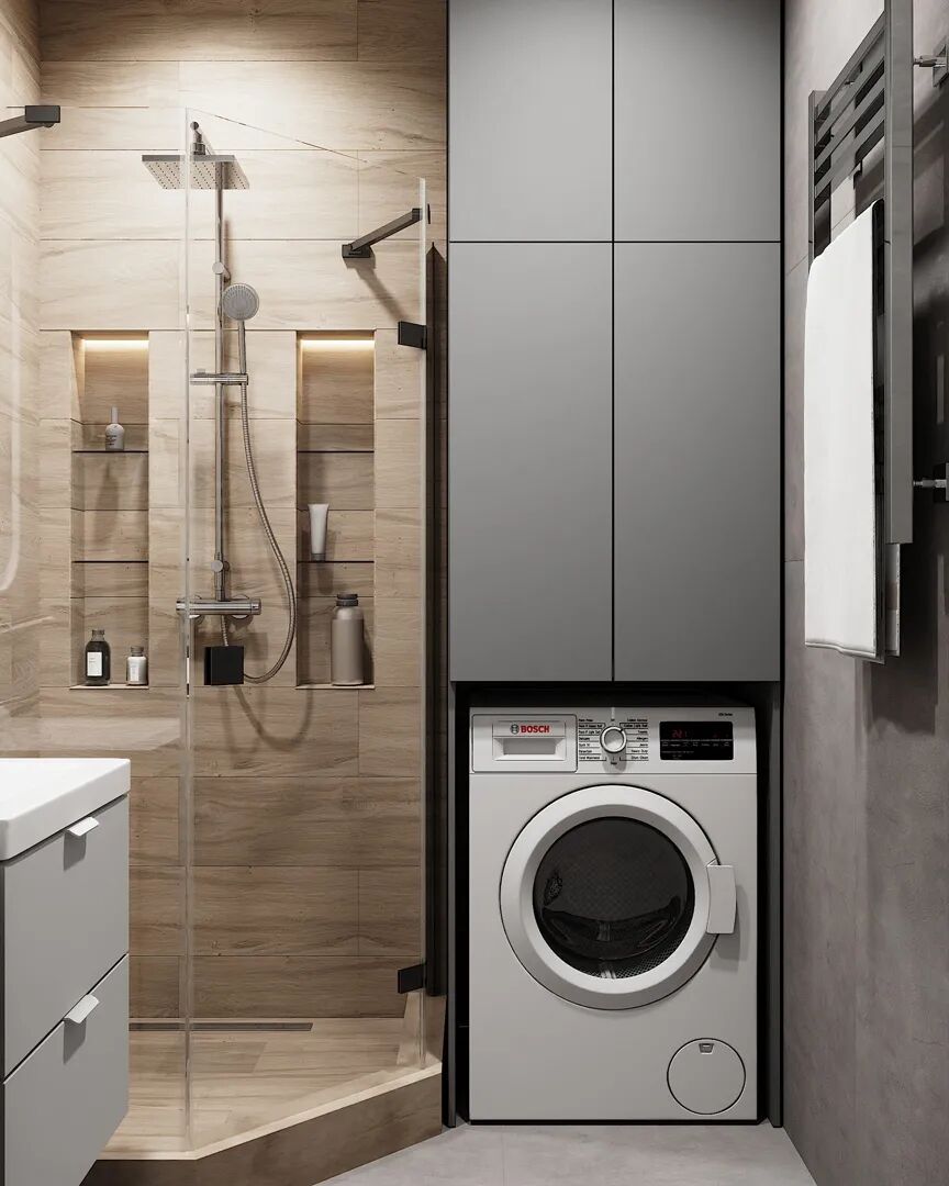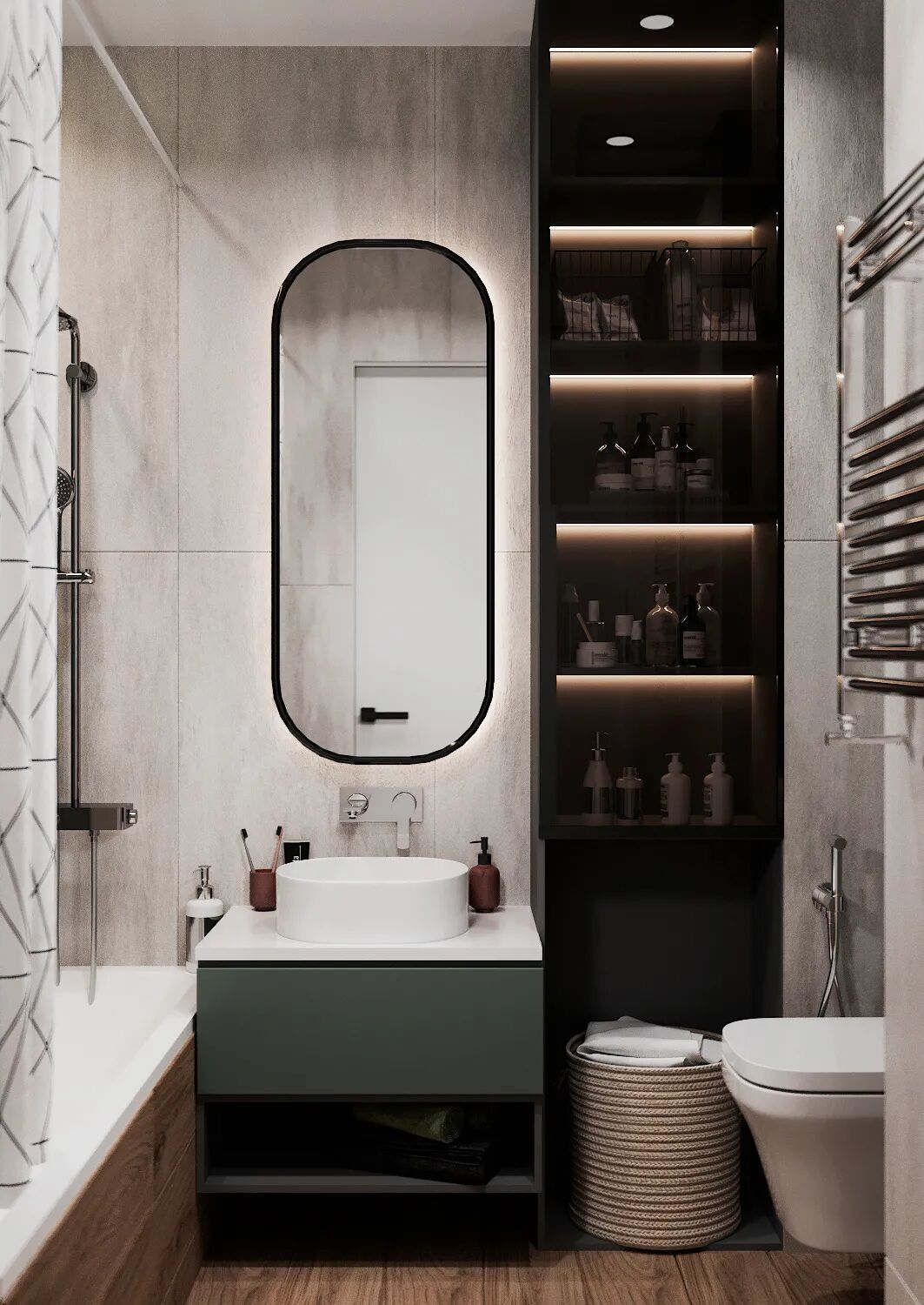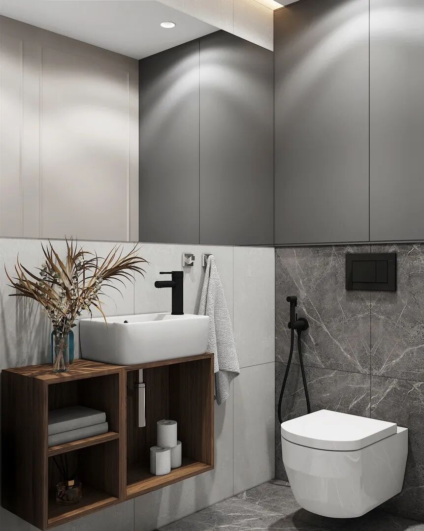 如果面积足够,可以将马桶与洗漱台分开,女主早晨洗漱完可以直接在里面化妆,即便是不足2㎡的卫生间,也可以实现如厕,洗漱的功能,不仅缓解了如厕排队的情况,也为卧室腾出更多空间,为家创造更多功能的可能性。