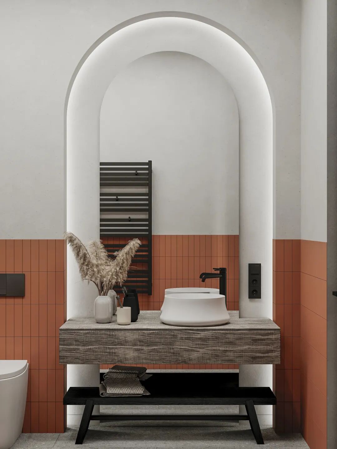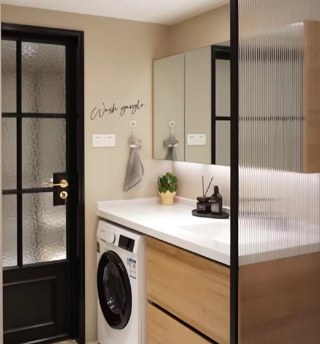 ②防水将洗漱台移到卫生间外,一定要做好这个区域的防水,墙面防水层至少要有1.5m高,并且墙地面最好都贴瓷砖,防止一旦漏水导致墙面发潮、发霉。