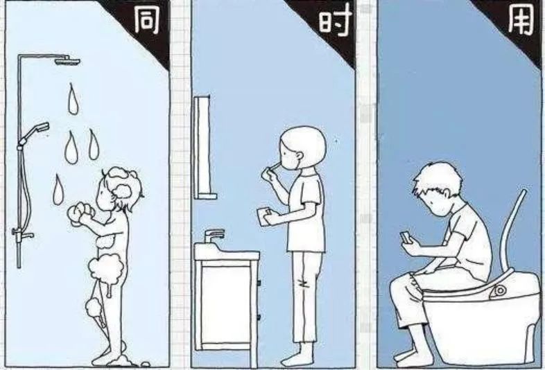 真正意义上的三式分离卫生间指的是洗漱、如厕、淋浴区域有墙隔断,空间不重叠,可供任意3个人同时使用。