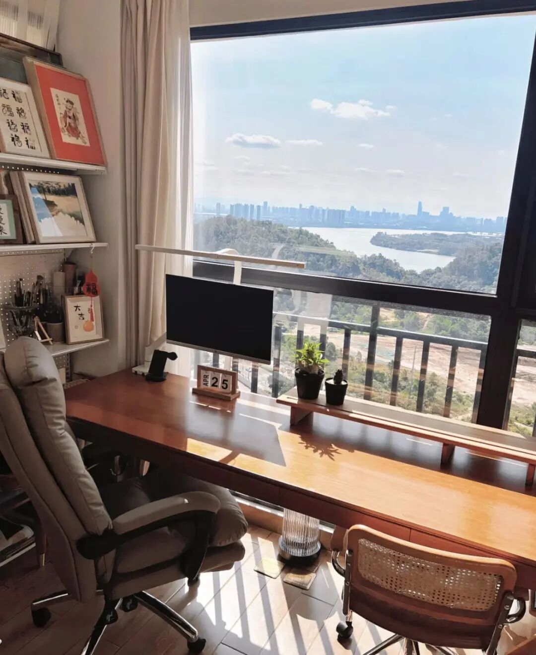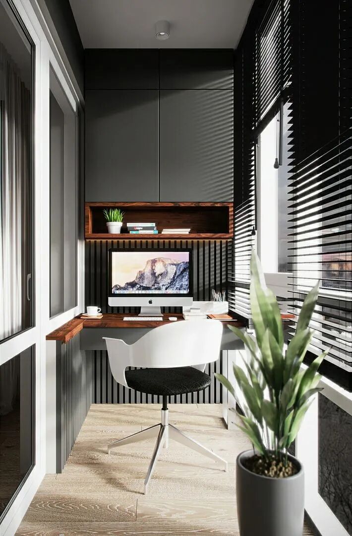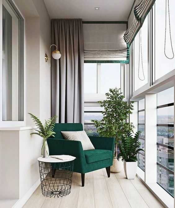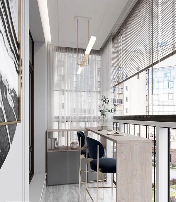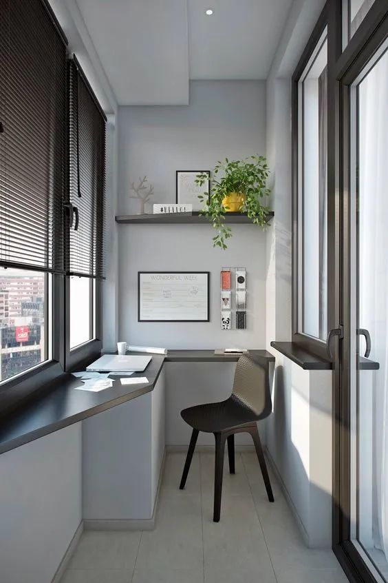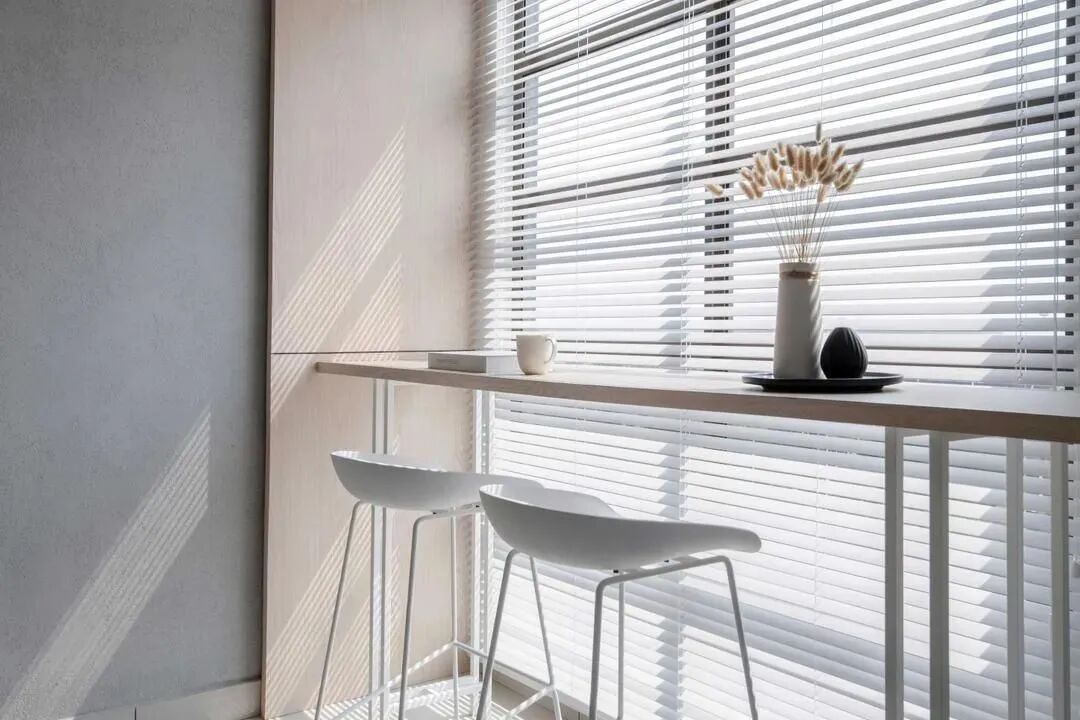 阳台风景优美,光线充足、空气清新,是学习和阅读的最佳空间,尤其适合室内面积小做不了专门书房的家。再摆上绿植,搭配百叶窗帘、灯光,提升舒适度。