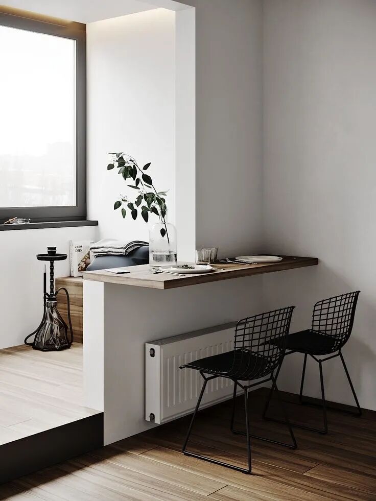 可以利用阳台自带的半墙,或在打阳台收纳柜时顺便做个小吧台。看看风景、喝喝咖啡,十分悠闲。